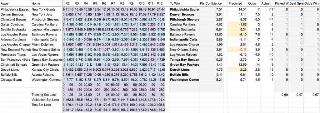 The Model only picked the winner 60% of the time, and won vs the spread just 47% of the time. The Model tends to pick winners a bit worse than the Vegas odds, but usually makes it up on it’s picks vs the spread.